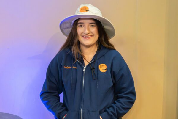 Navy Blue with Name in Script Embroidery in Orange – Right Chest & Logo on Left Chest